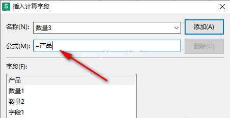 4.随后,在公式的框中就会显示出我们需要的字段,之后点击确定按钮。