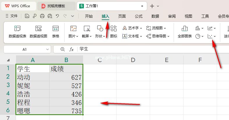 WPS散点图xy轴互换的方法1.首先,我们需要将数据选中,然后点击【插入】选项,在工具栏中将散点图图标点击打开。